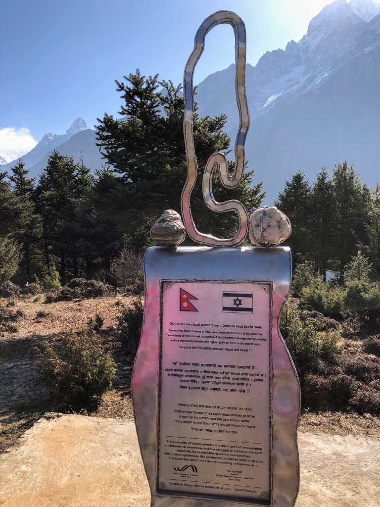 This monument contains 2 stones from the Dead Sea, the lowest place on Earth & the holy sight where Christ was baptized. The symbolic meaning is to establish relationship among various components of environment either it is from the highest point on earth or the lowest place on earth.