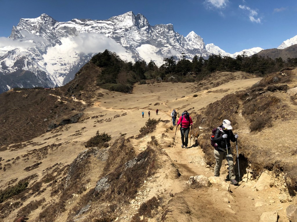 `Resting’ in the Himalaya means you are day-hiking to help train your lungs. Your sherpa guides will make you move, and climb. There are many trails around the town but the most popular one is where you climb a steep hill to the Everest View Hotel. The hike is short, but not easy, this is the first time you will `feel’ the altitude, heavier breathing and slower pace starts right here.