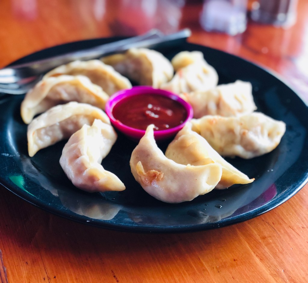 We kept walking for another three hours or so to reach Machhermo. Getting inside a cozy shelter felt really good. We removed our wet layers and got comfortable. I ordered a plate of momo, a vegetarian variety while sipping a hot cup of ginger lemon tea.