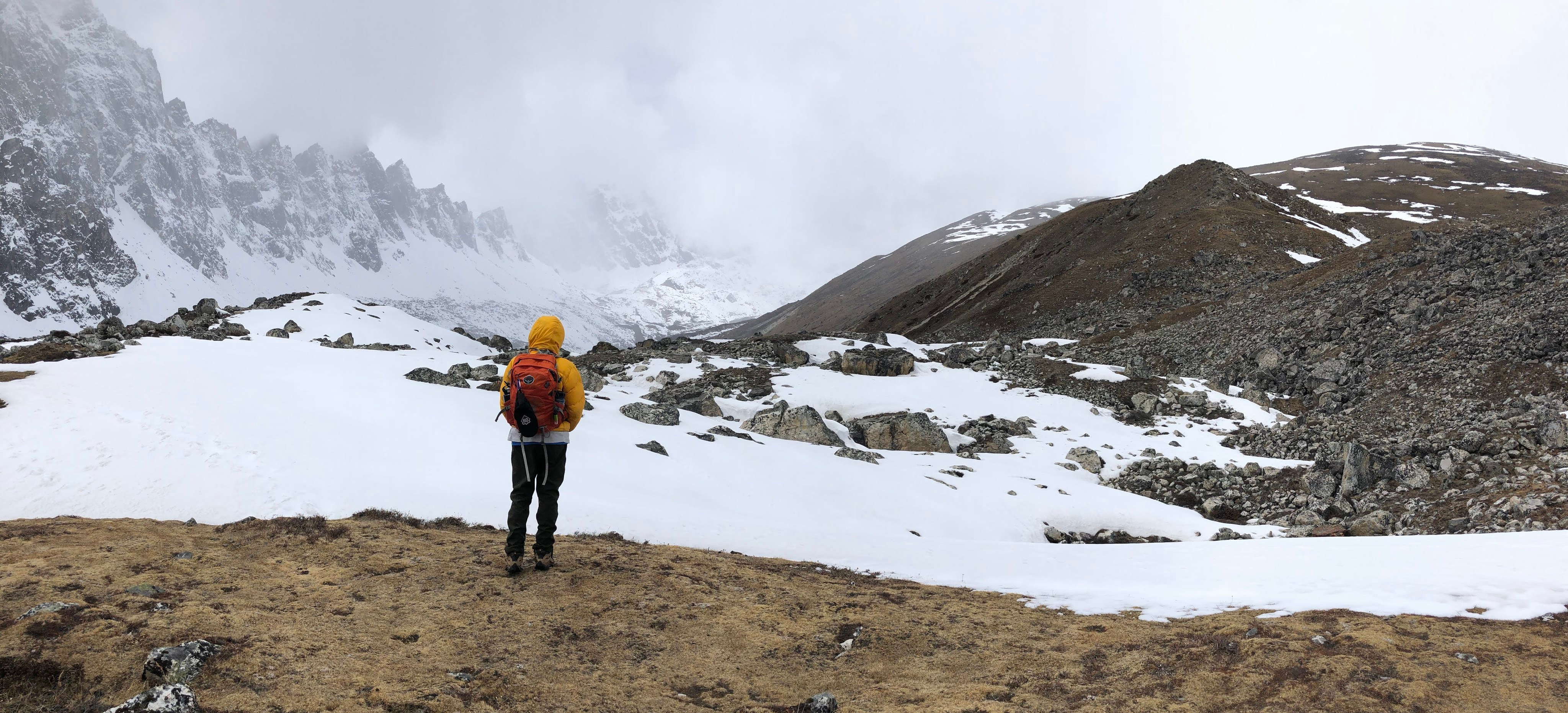 The rest of us continued walking towards the fifth lake. Thick clouds started rolling in with increasing snowstorms. We walked for two more hours. With the fifth lake being 10 minutes closer, we had to make a decision to turn around, because increasing blizzard with high winds.
