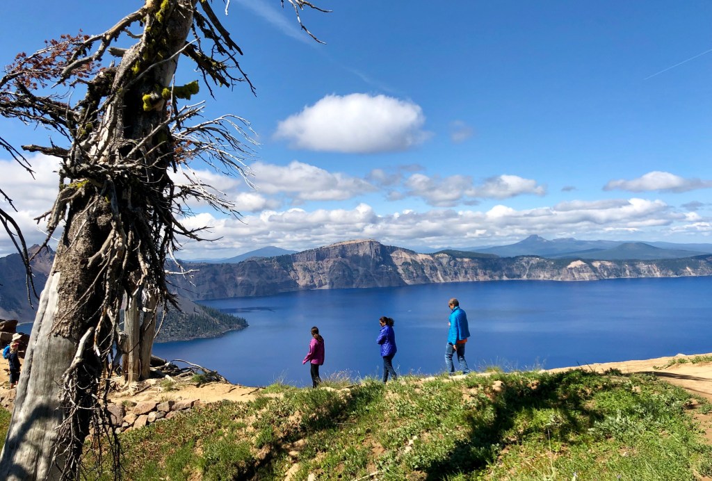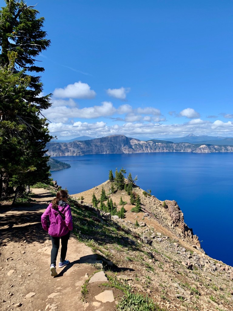 The trail starts right behind the Crater Lake Lodge, it is short and steep, the 1.7-mile switchback trail gains fast 1,000 vertical feet. Beautiful trail with the lake being on your left leads you up at 8000 ft up to the summit.