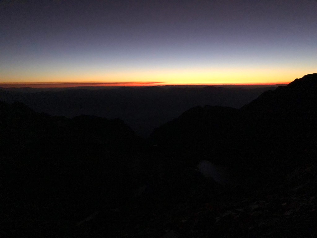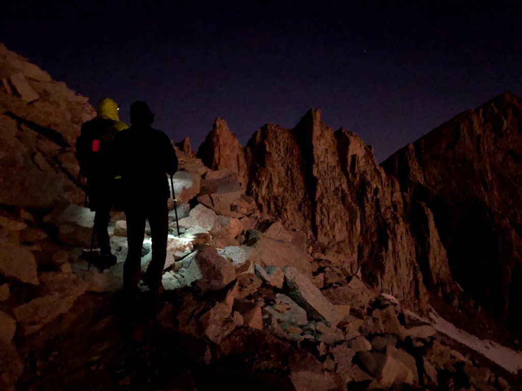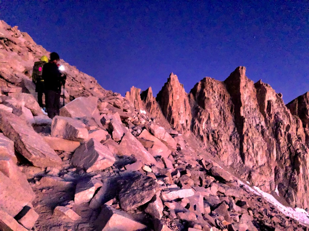 Day 2: We Woke up at 3, and turned our headlamps on for a night-hike. We had a five-mile and 2500 ft climb left to the summit. We saw a couple of groups passing by our tents.