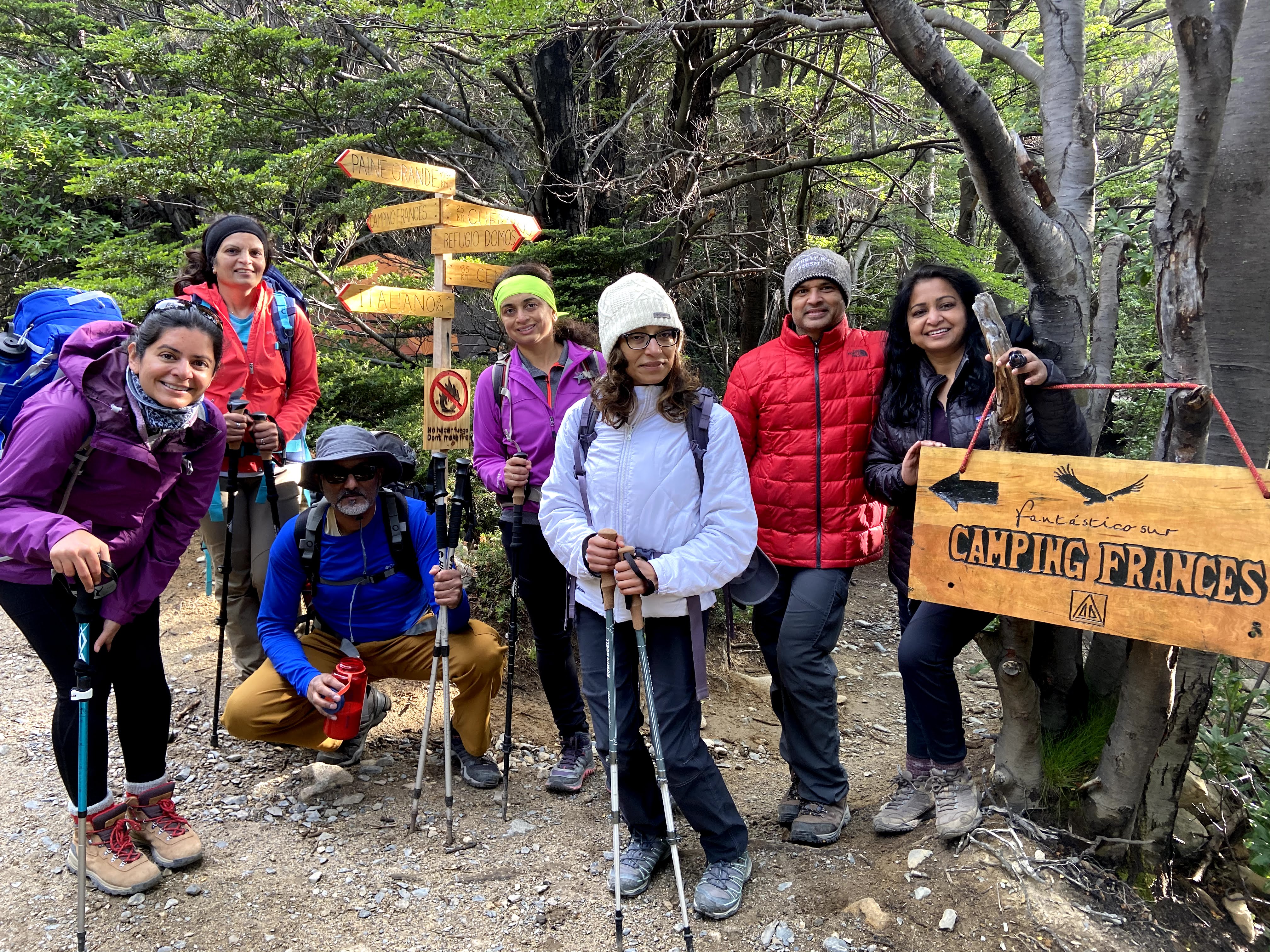 Reshma who just flew in was supposed to be hiking with us from now on, but she insisted that she would want to do the base of the towers trek and said she would go alone and join us at the next campsite if no one else is up for joining her. This means doing two demanding day-hikes totaling about 22 miles in one single day. Everyone was tired but we obviously would never let her split off the group to hike alone in unknown territory. Dharmesh and Tj decided to accompany her and Sandip decided to stay with the rest of us ladies to the next stop. We switched backpacks to help them lighten their loads. We all decided to meet up at the Frances Domes Campsite in the evening.