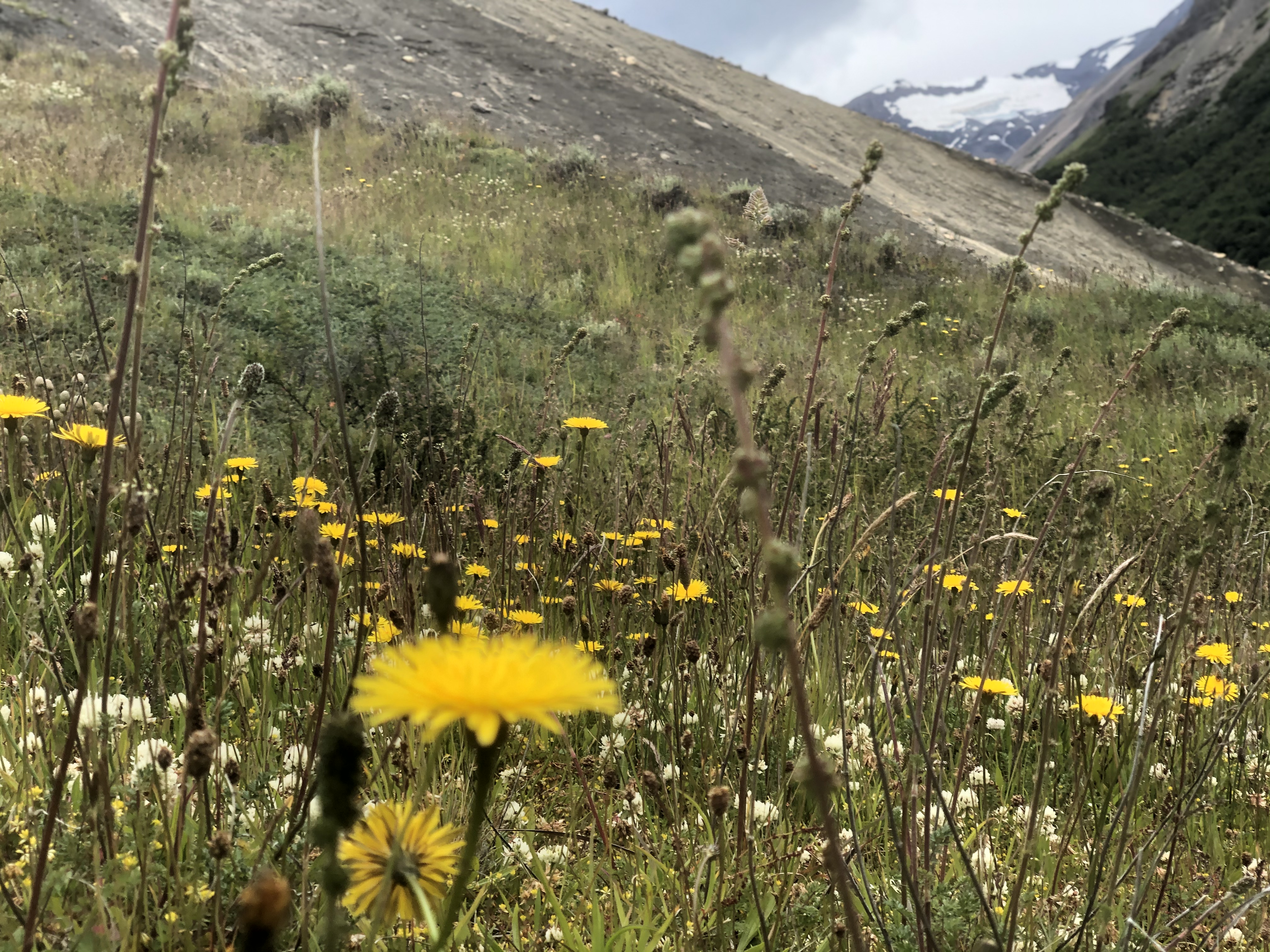 After crossing the bridge and getting out of the area in half an hour or so, we entered this beautiful meadow. It was vast terrain of breathtaking lush grassland blooming with wildflowers. This spot reminded me of Tuolomne Meadow of my beloved Yosemite National Park back home in California. Yesterday’s forest and the river also reminded me of Yosemite’s forests and the hiking trails along the Merced River. We took it easy and spent a lot of time walking through the meadows.