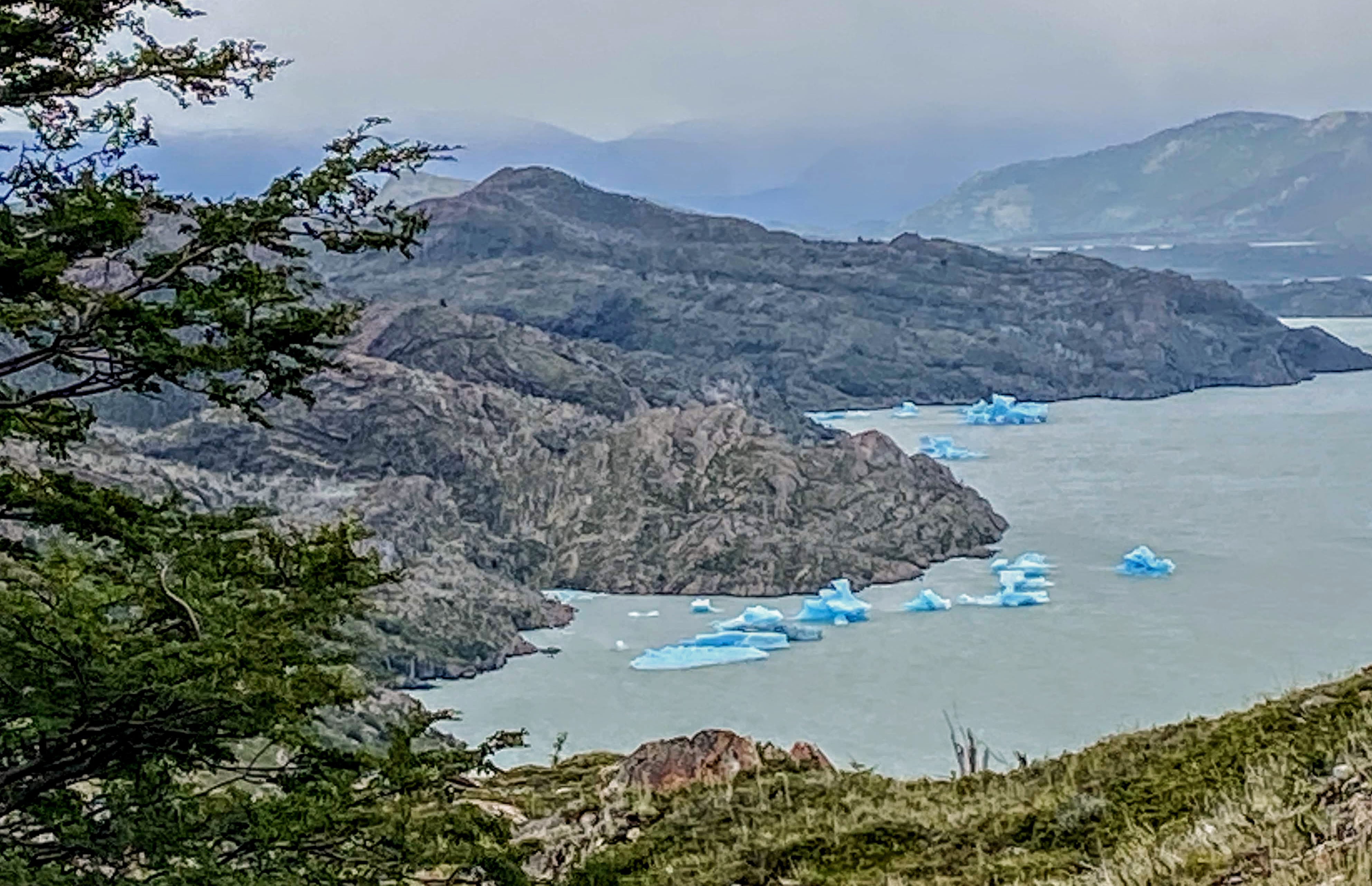 We started hiking much later, around 10 today. The first part was a steady climb up the ridge, and then after another hour or so, we saw magnificent Grey Lake. The scenery of the lake was so beautiful with floating icebergs in it.