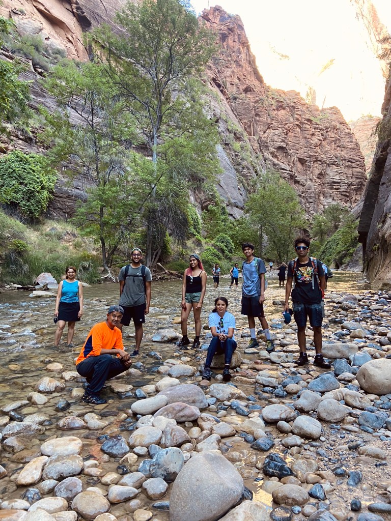 This was my third time to the narrows. I loved the top-down, two-day backpacking trip to explore the entire narrows, unfortunately, we didn’t have a lot of time in our hands this time around. We also had to reserve our seat on the bus to access the trailhead due to COVID. Due to the limited number of people allowed in this popular national park to maintain safe distancing, we couldn’t get to the trailhead till mid-afternoon.