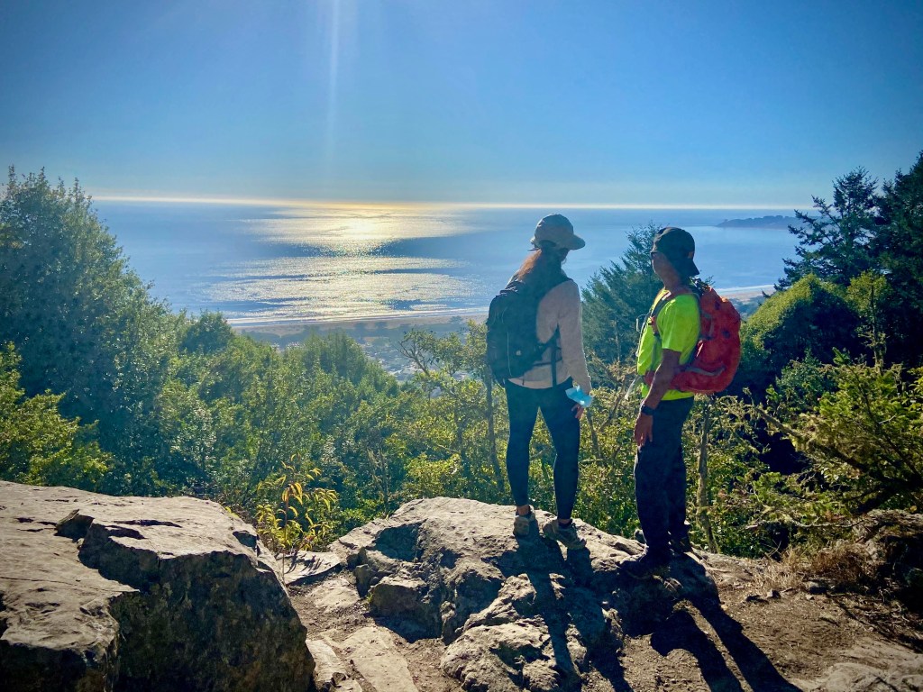 As you start hiking up from the Pacific Ocean, this trail passes through gushing streams, canyons, wooden bridges, ladders and towering redwoods, it gains elevation soon, and opens to the spectacular ocean views once it emerges on the top of the redwoods!