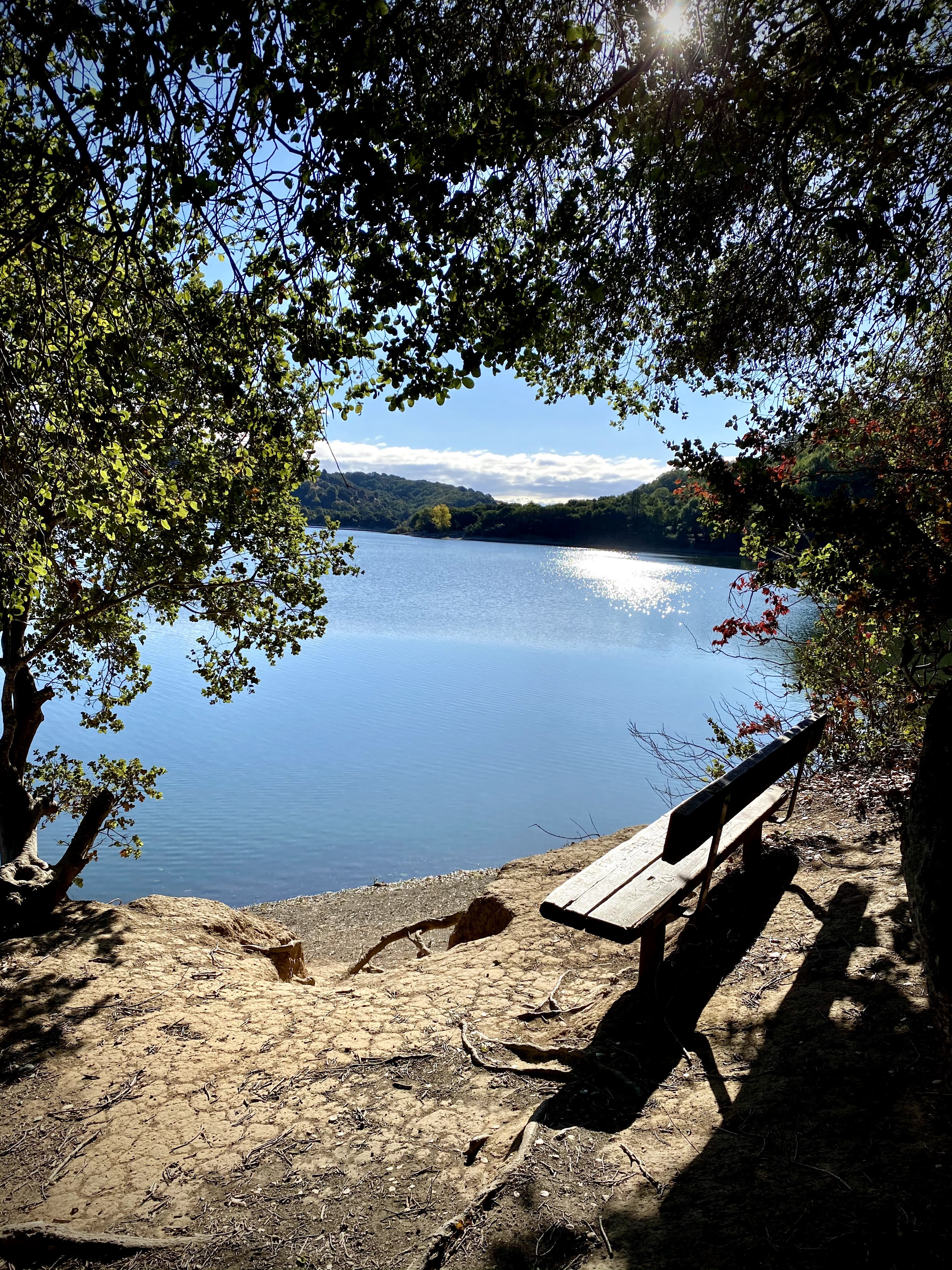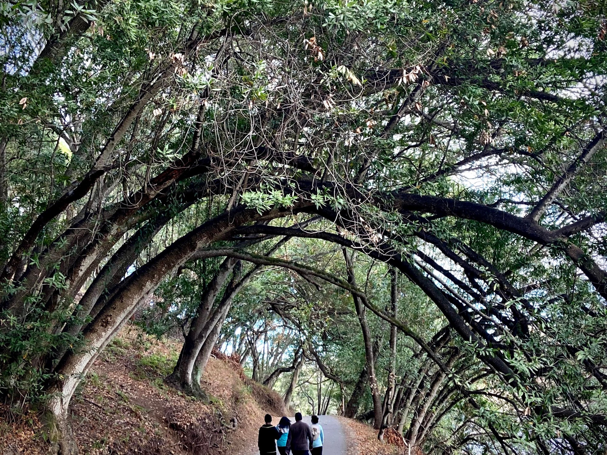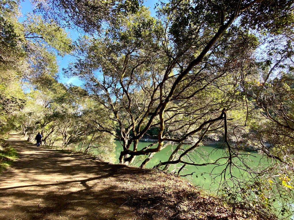 The regional park is developed around a reservoir and there is a perfect ~10 miles of hiking trail encircling the lake, which is well-maintained. You have an ability to do either the east side or the west-side of the late if you are not up for walking the full circle. We have done the circle too but I personally like to hike the west-side due to the trail passing through this cool canopy of trees!