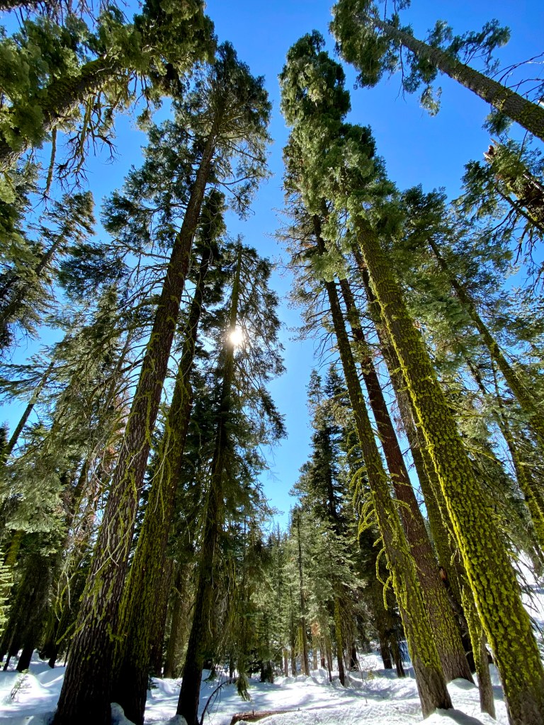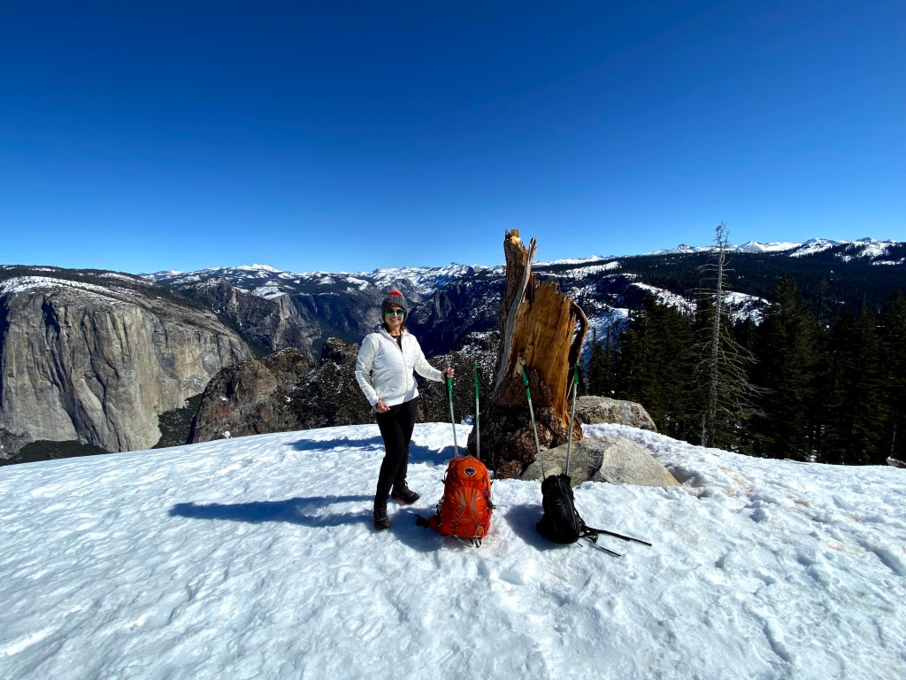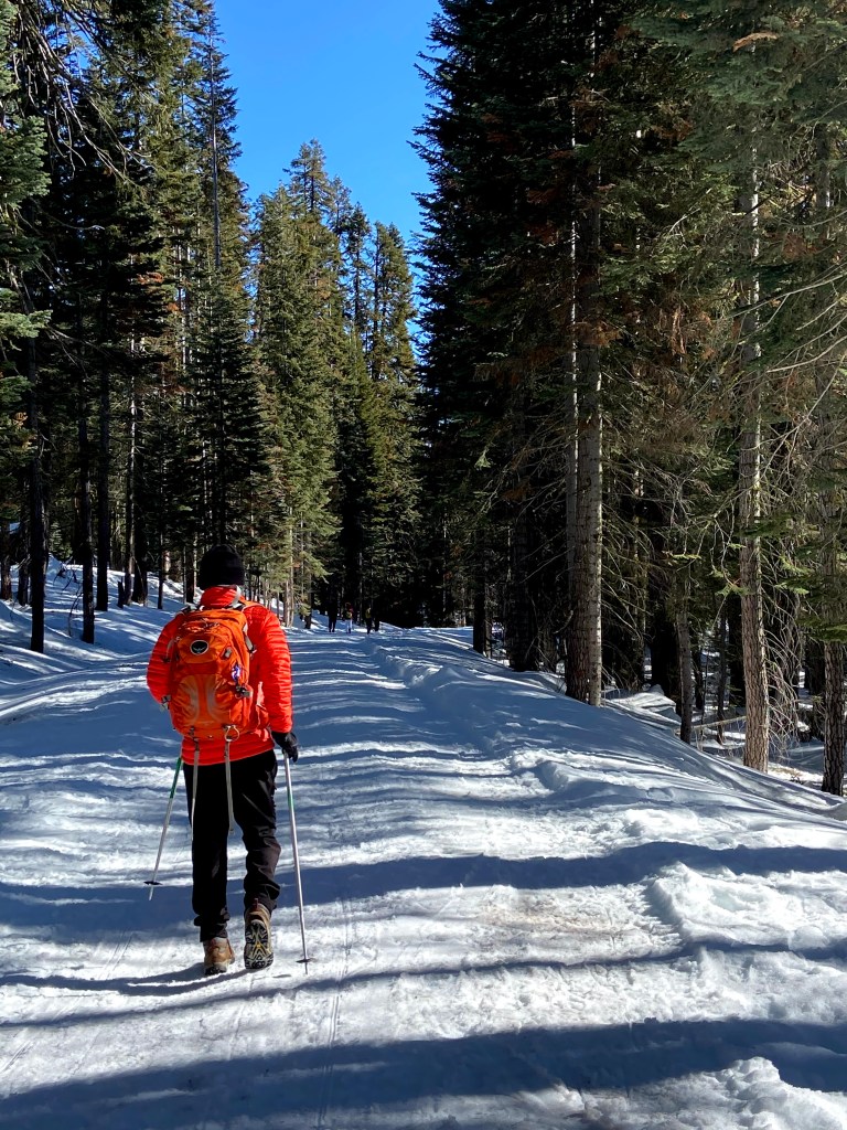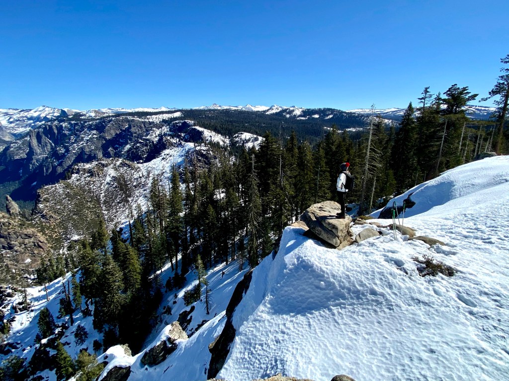 The first mile and a half traced the Glacier Point Road, which is closed off in winter for cross country skiing and snowshoeing. There wasn’t enough snow and we felt like we could’ve gotten away with micro spikes, but there were some deep areas where snowshoes were useful.