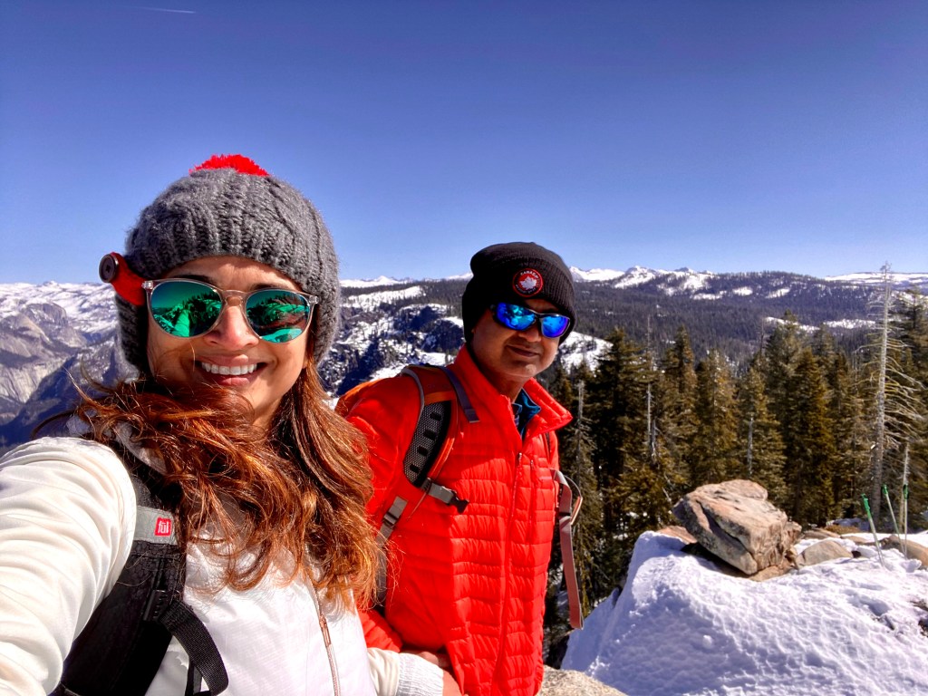 Since we were already in the Yosemite Valley to witness amazing Fire Fall phenomenon, we decided to extend our stay for an extra day to get some snowshoeing done. The snowshoeing trail (7 mile round trip) to Dewey Point starts at Badger Pass Ski area.