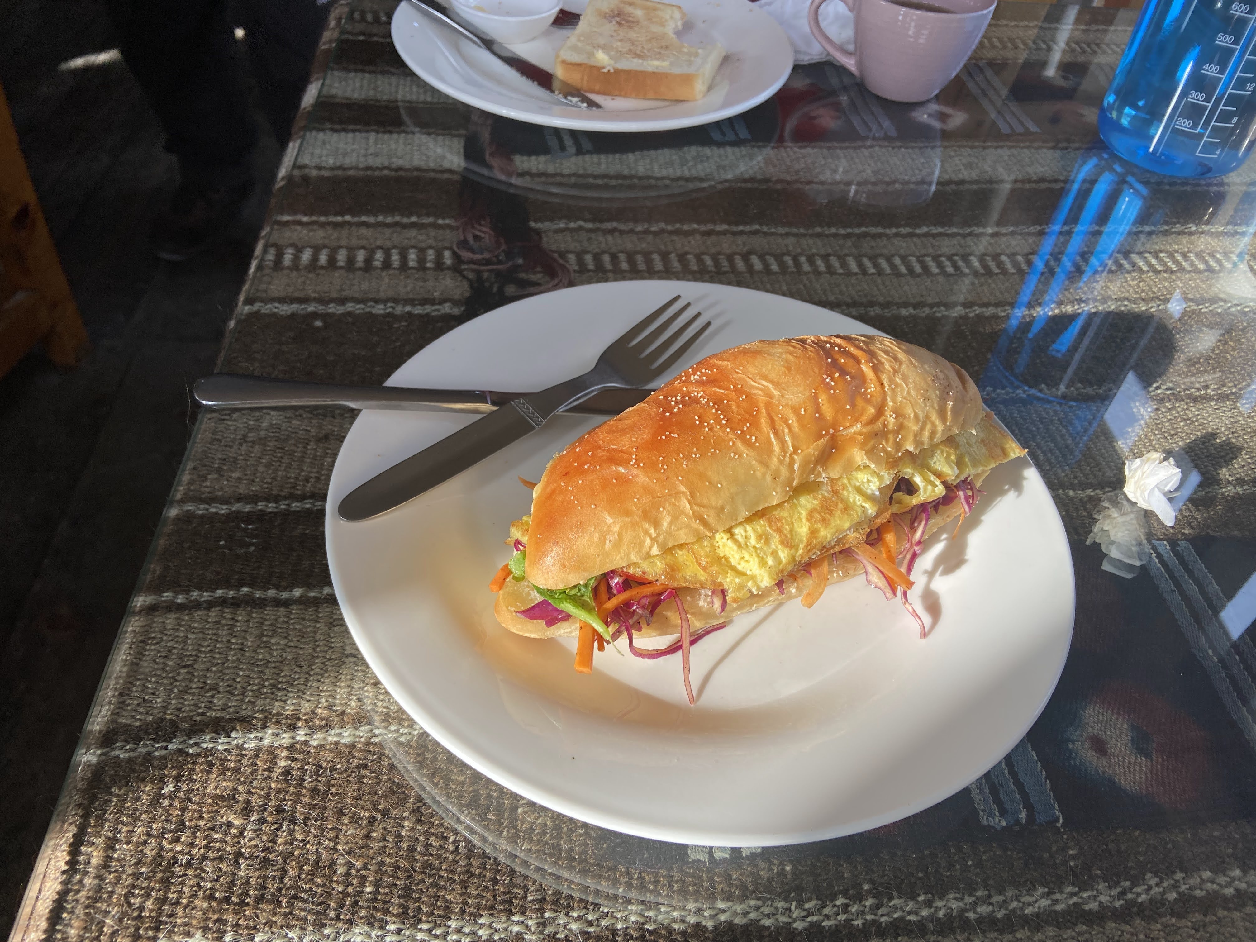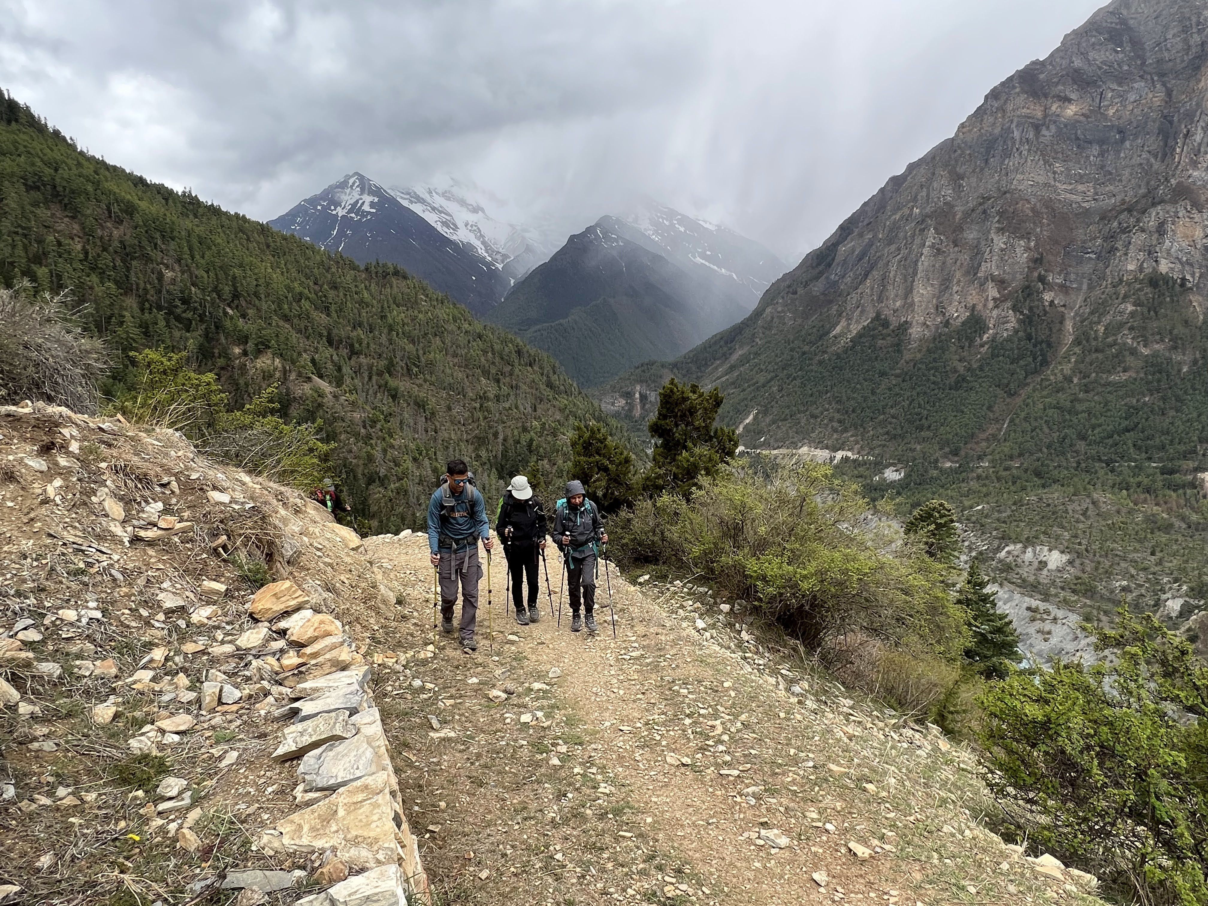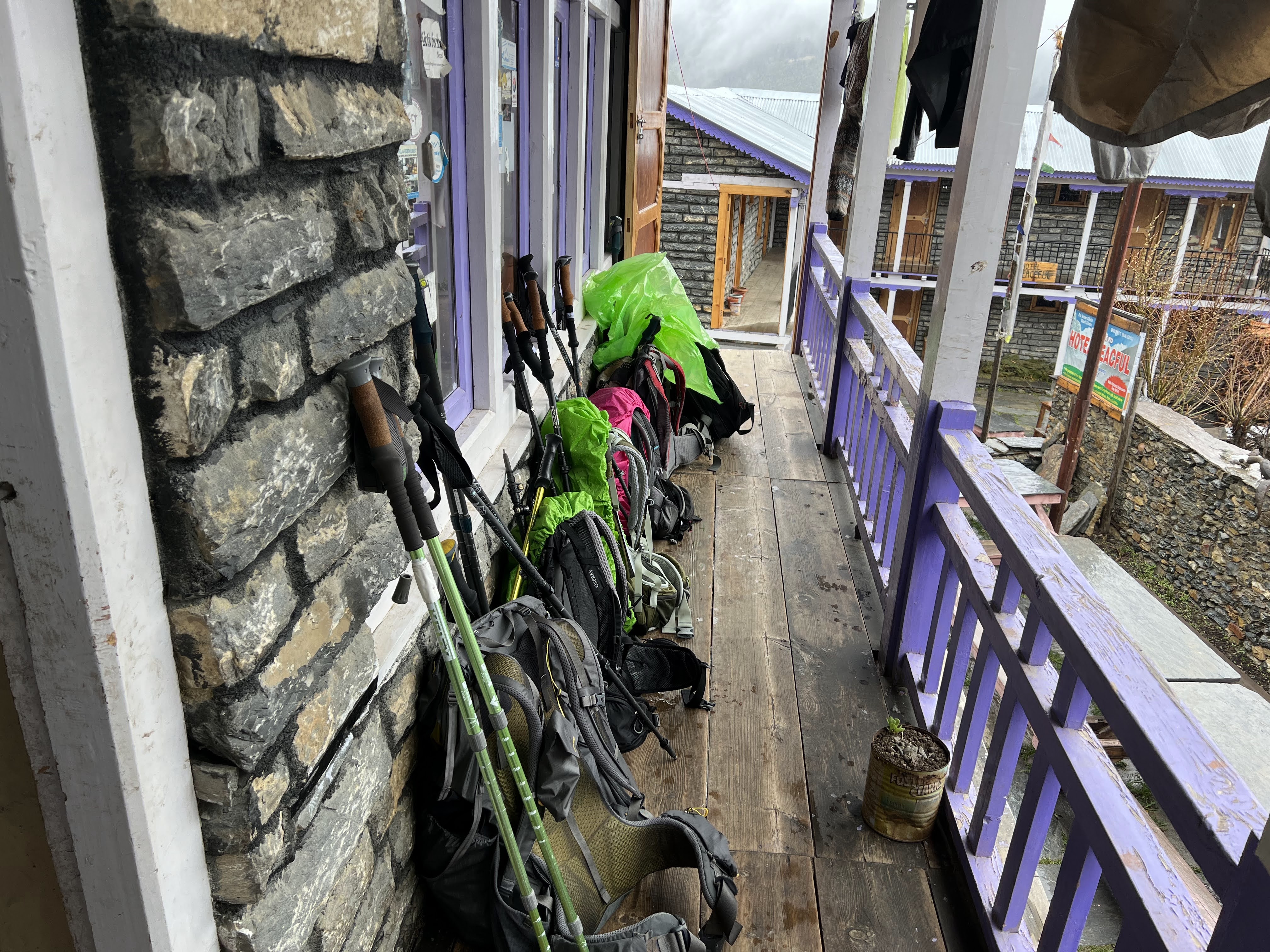 The rest of the trail was Nepali flat (gentle slopes), which made it easier to acclimate with gaining altitude. It started raining around 10am and got heavier in an hour and stayed like that for the rest of the day.