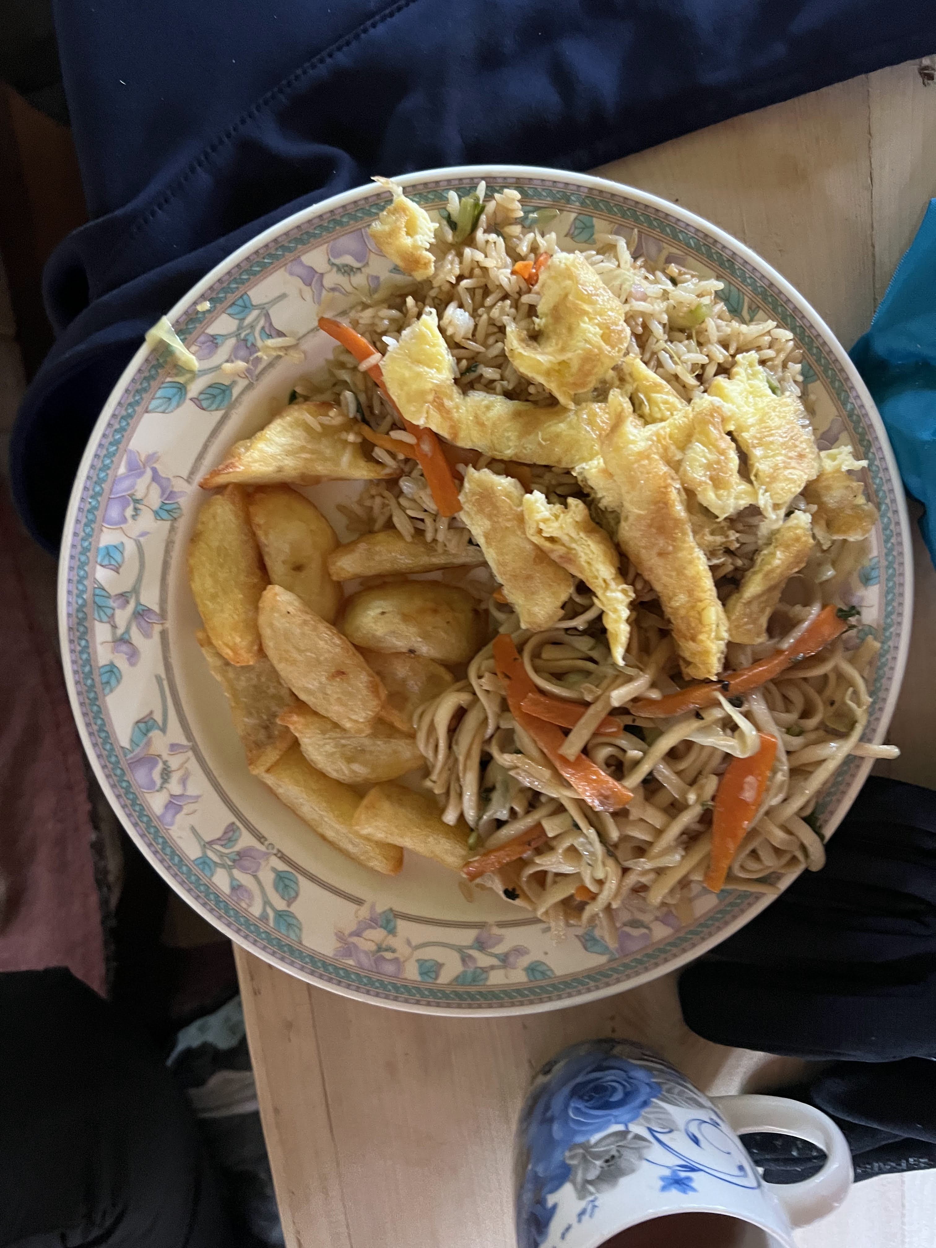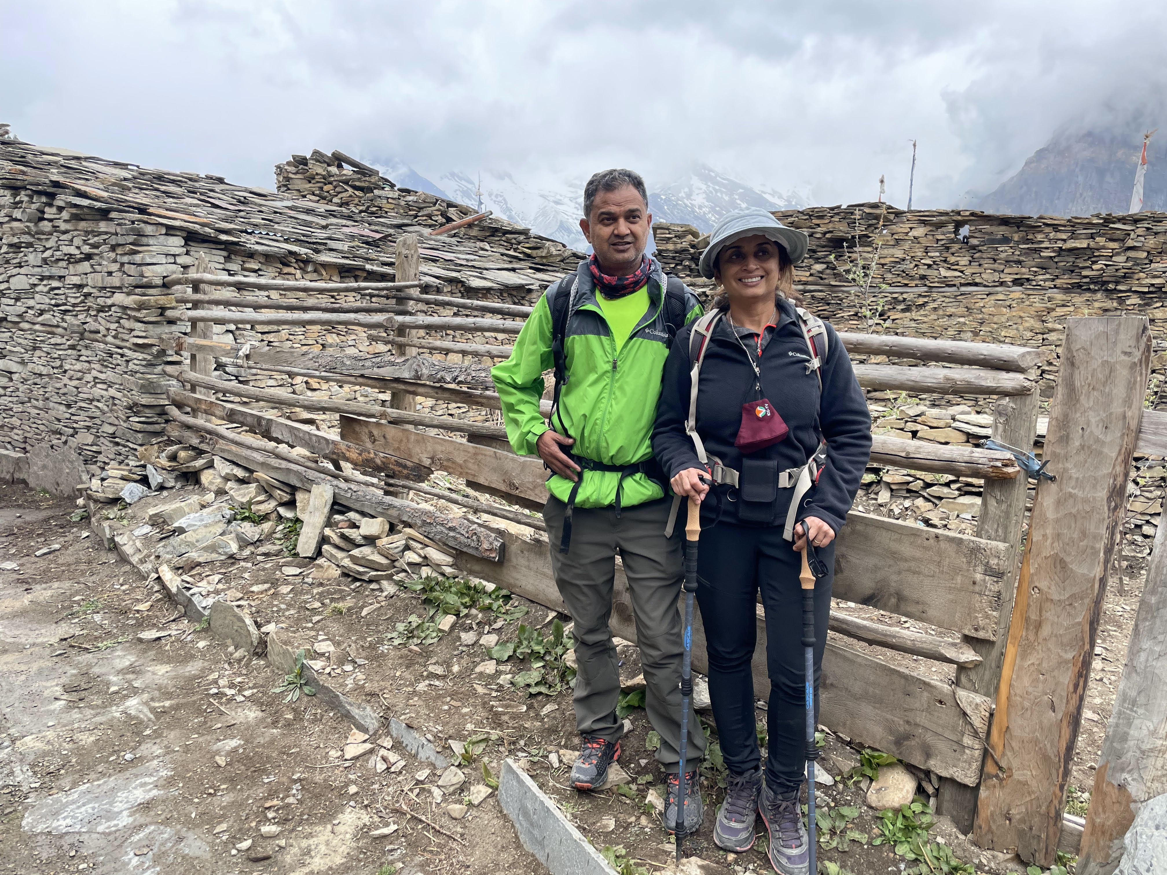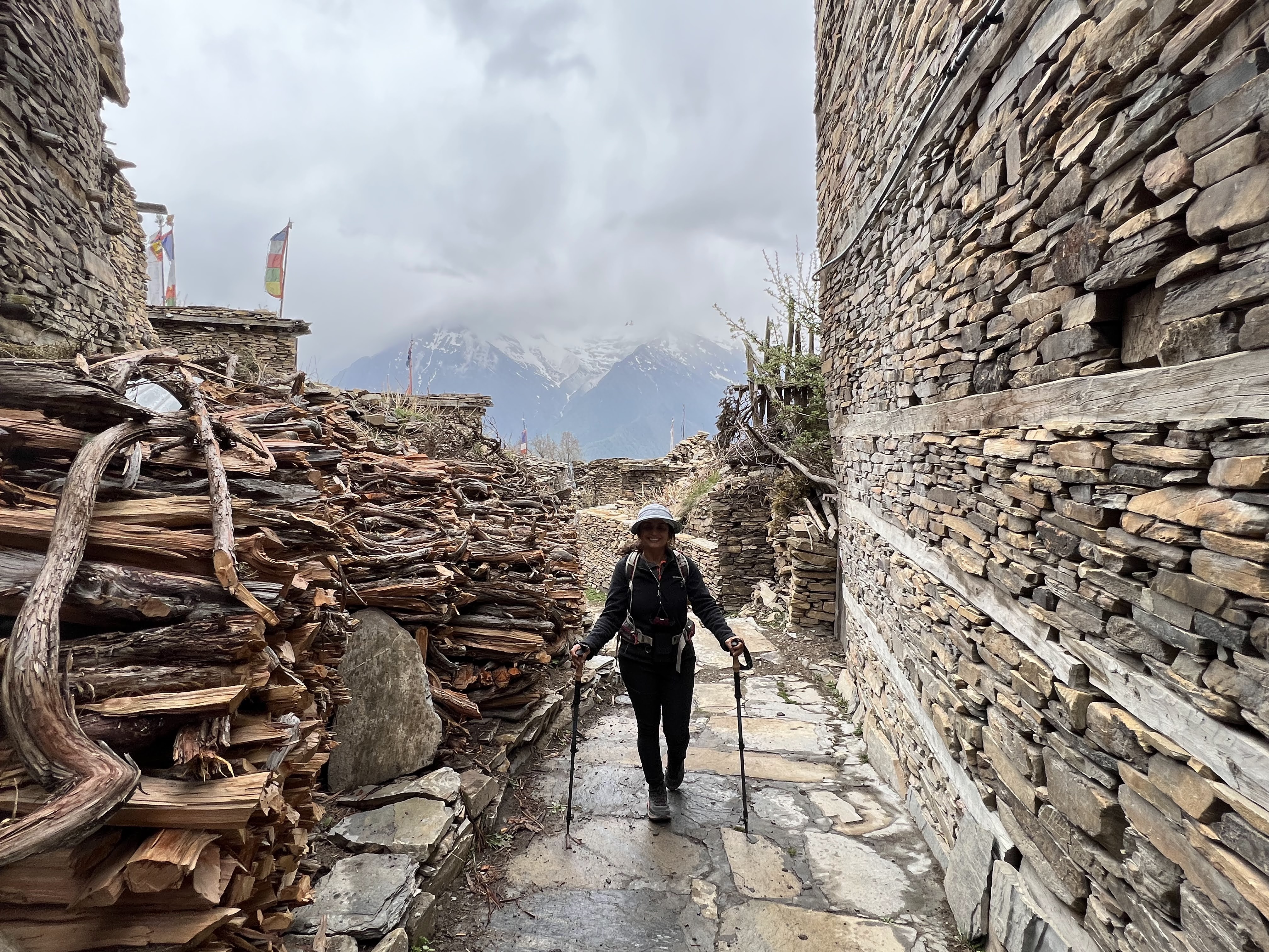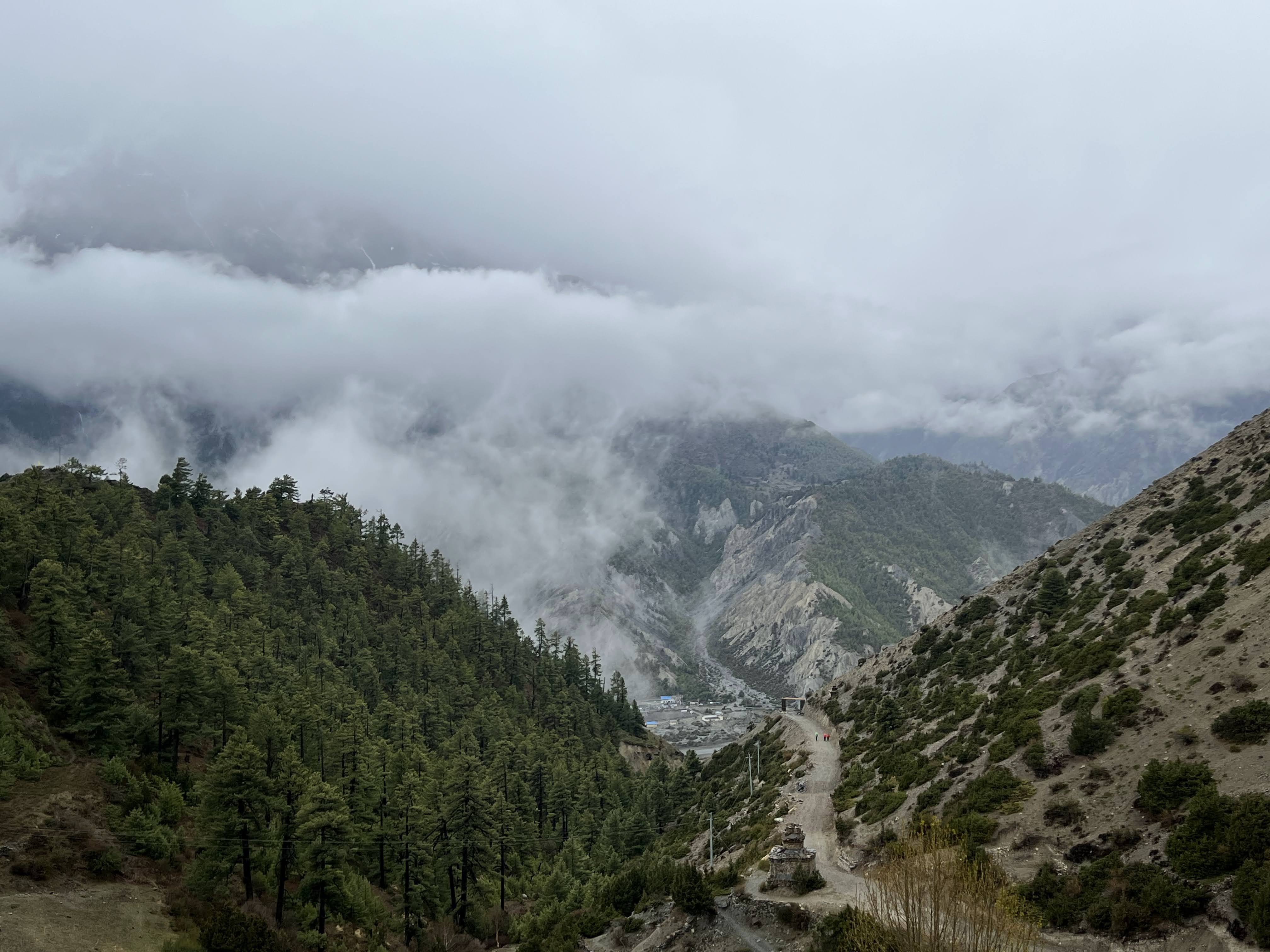 It got cloudy and the views were obstructed, we also couldn’t look up due to the rain, we kept on walking for two more hours and stopped for lunch. The teahouse had heater, so we tried to dry up as much as we could. We waited there for an extra hour for the rain to stop. It tapered a bit so we left but it started again in an hour. We had no choice but to keep walking till we reached to Manang. Another three hours of wet walk took us to Manang.