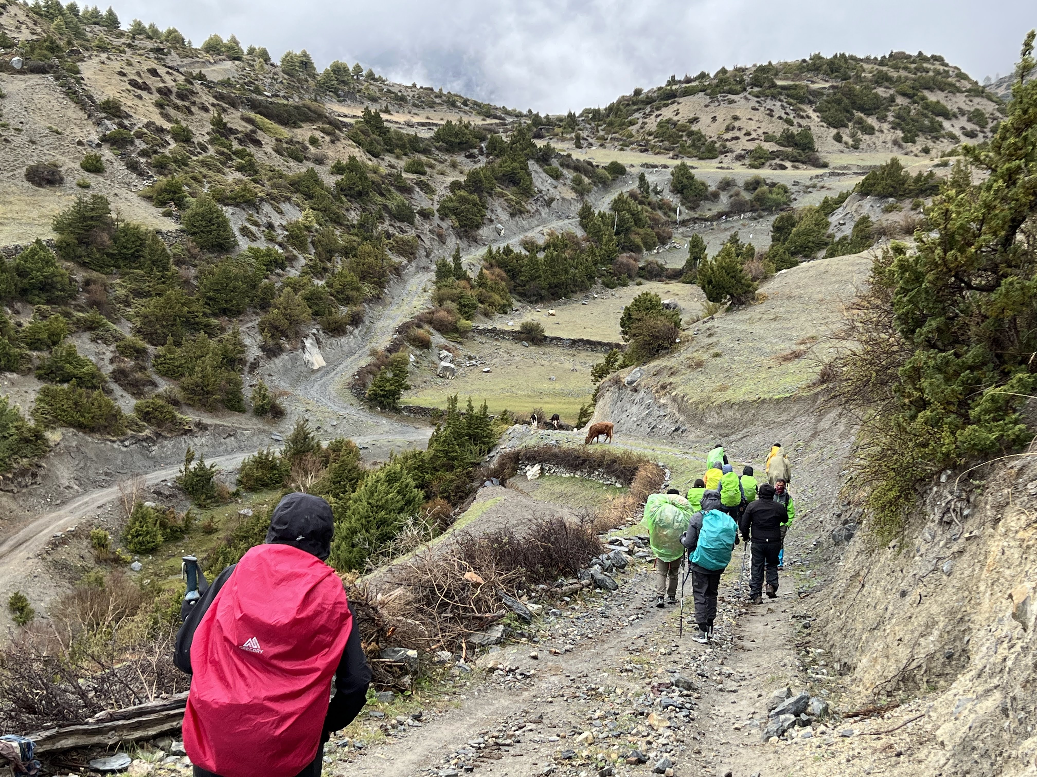Our porters took faster route by walking the road. Dol, our guide took us on a train via Upper Pisang.