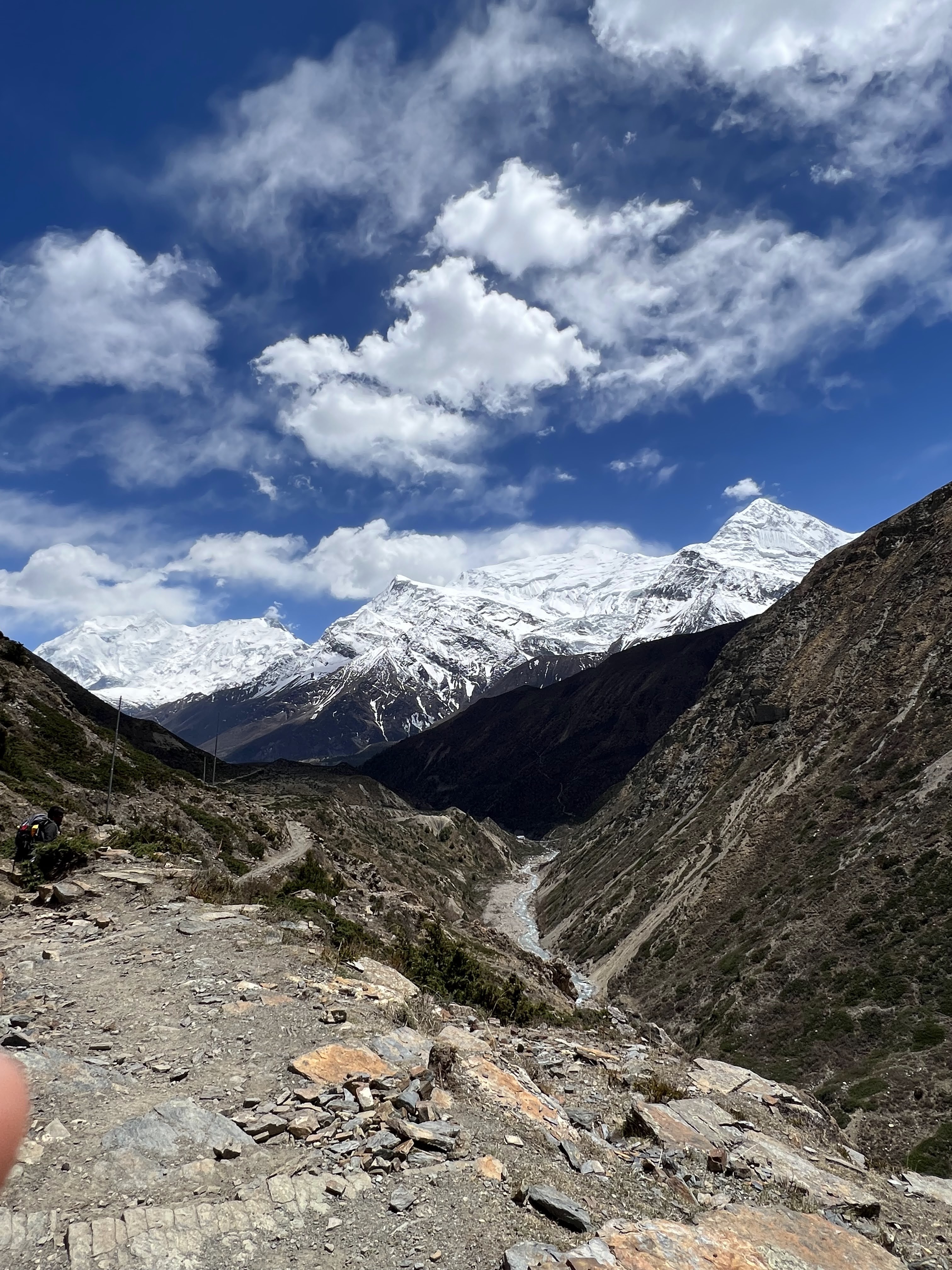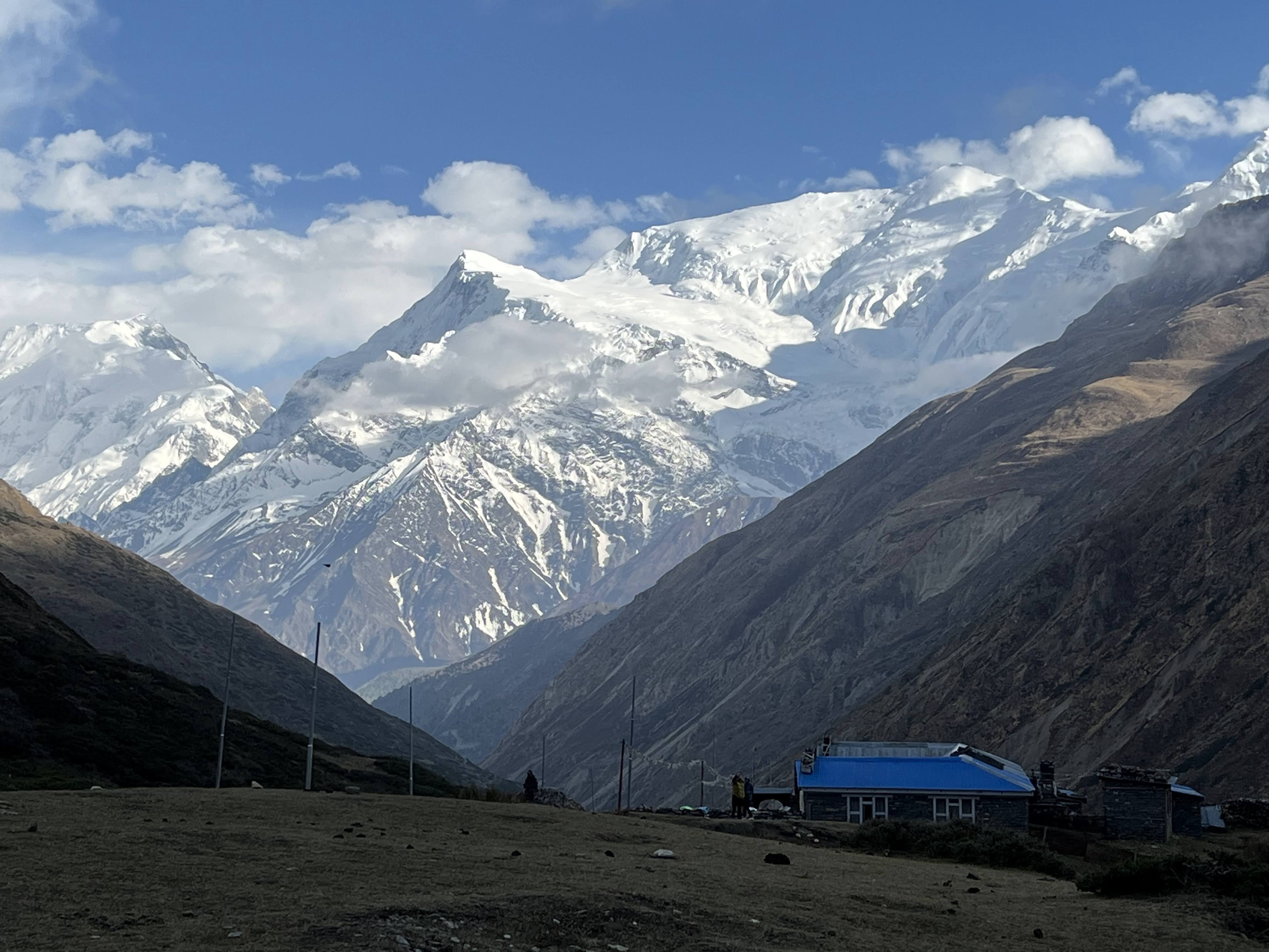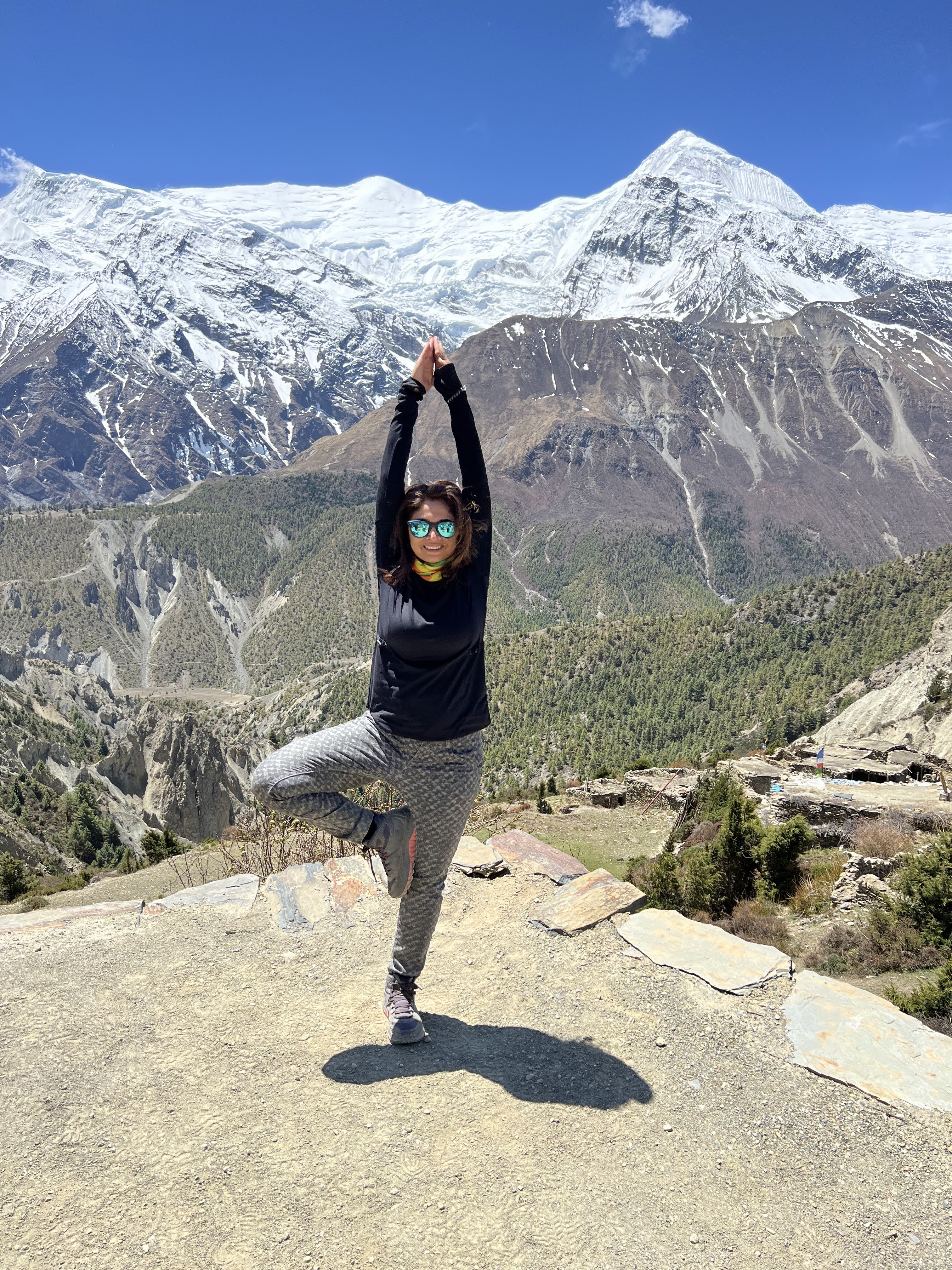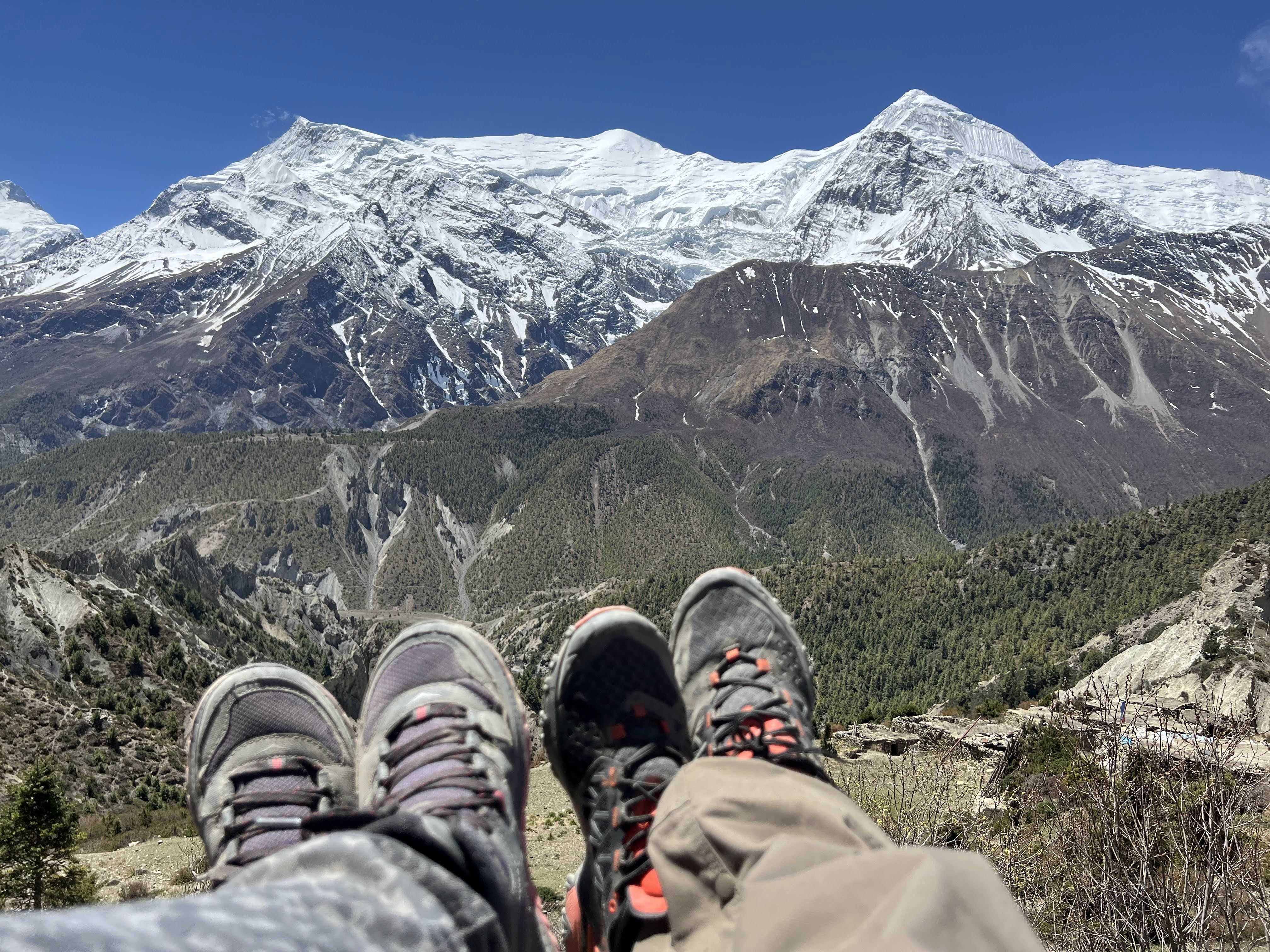 We woke up with a crystal clear day today with full sunshine! I ran up the terrace of our hotel, the stunning views of Annapurna 2,3,4, Gangapurna and Tilicho peaks were incredible!