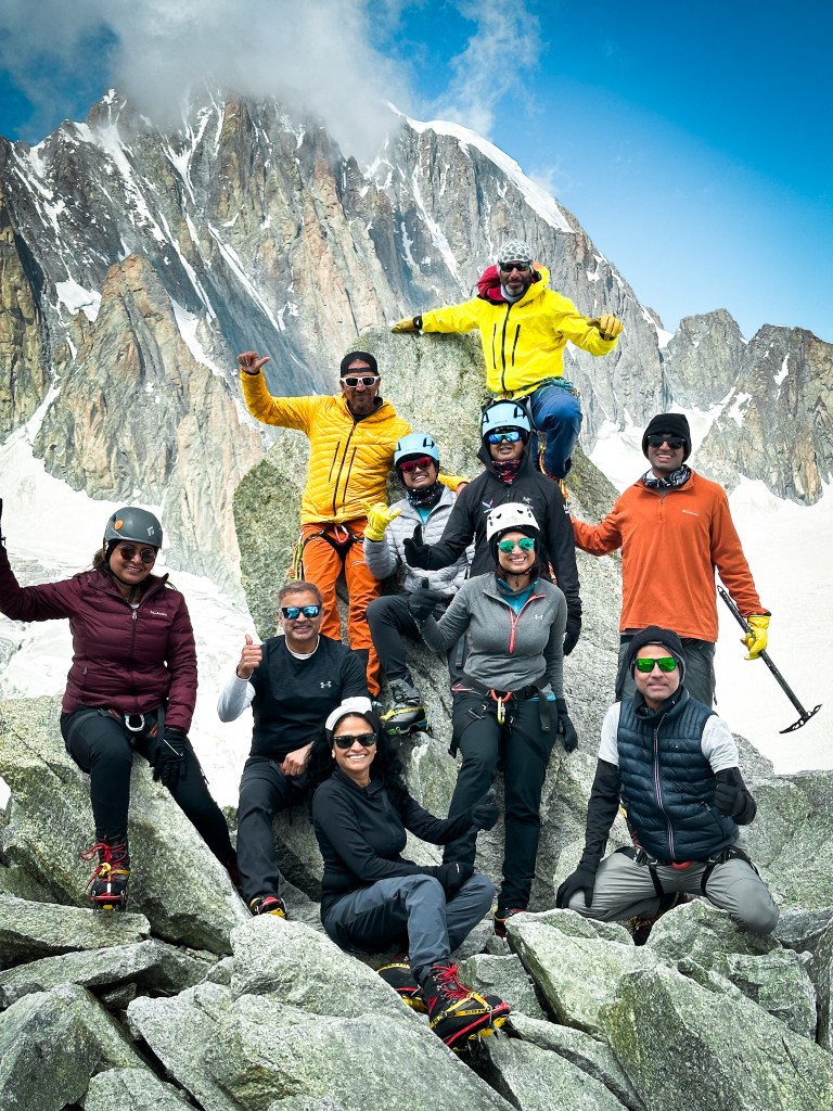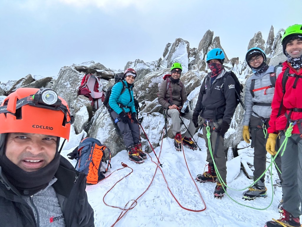 But climbing is about camaraderie, and six brave souls including my husband Dharmesh and both of my boys, Arnav and Anuj (now 19 and 22) from our group pressed on, conquering the summit. Their cheers echoed through the mountain air as I, along with my friend, made our way back down the ridge to solid ground.