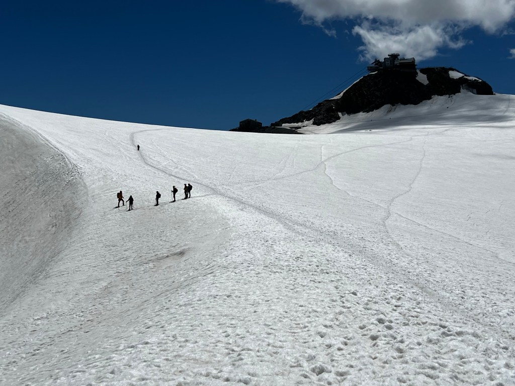 After checking in, it was time to get down to business. Our crampons were strapped on, and we were ready to hit the glacier. The skills we learned were essential for the upcoming Mont Blanc climb, and the glacier was the perfect classroom.