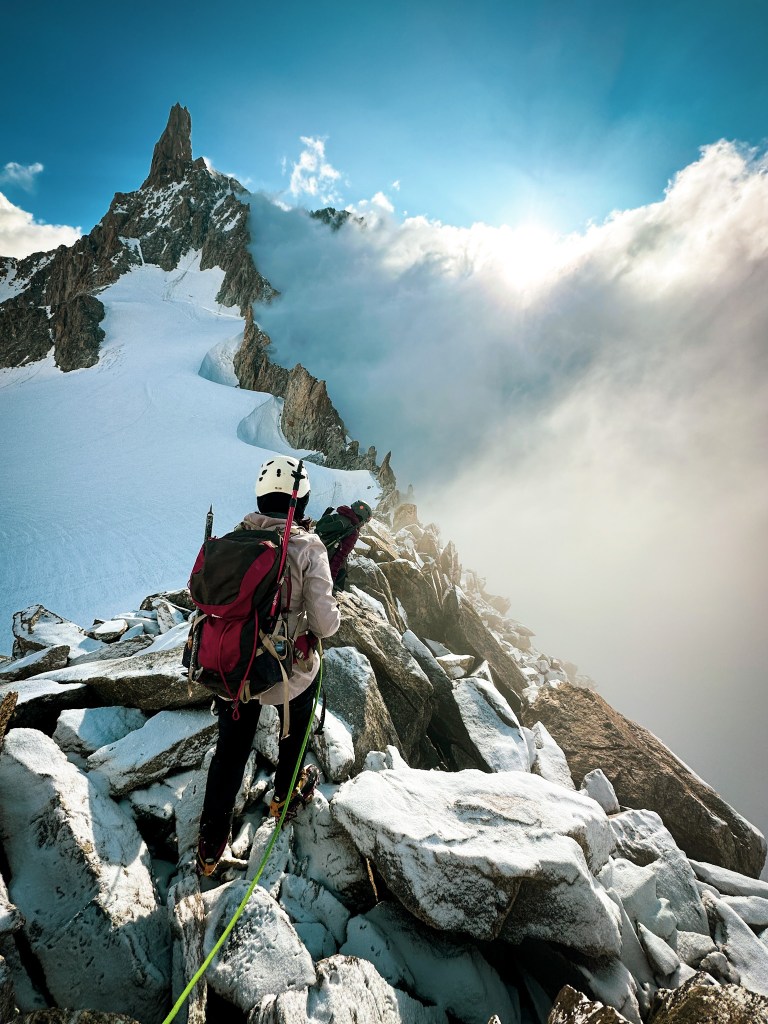 Day two was all about putting our newly acquired skills to the test. With crampons securely strapped on and ice axes in hand, we set our sights on Aiguilles Marbrées, a stunning peak that boasts some challenging terrain.