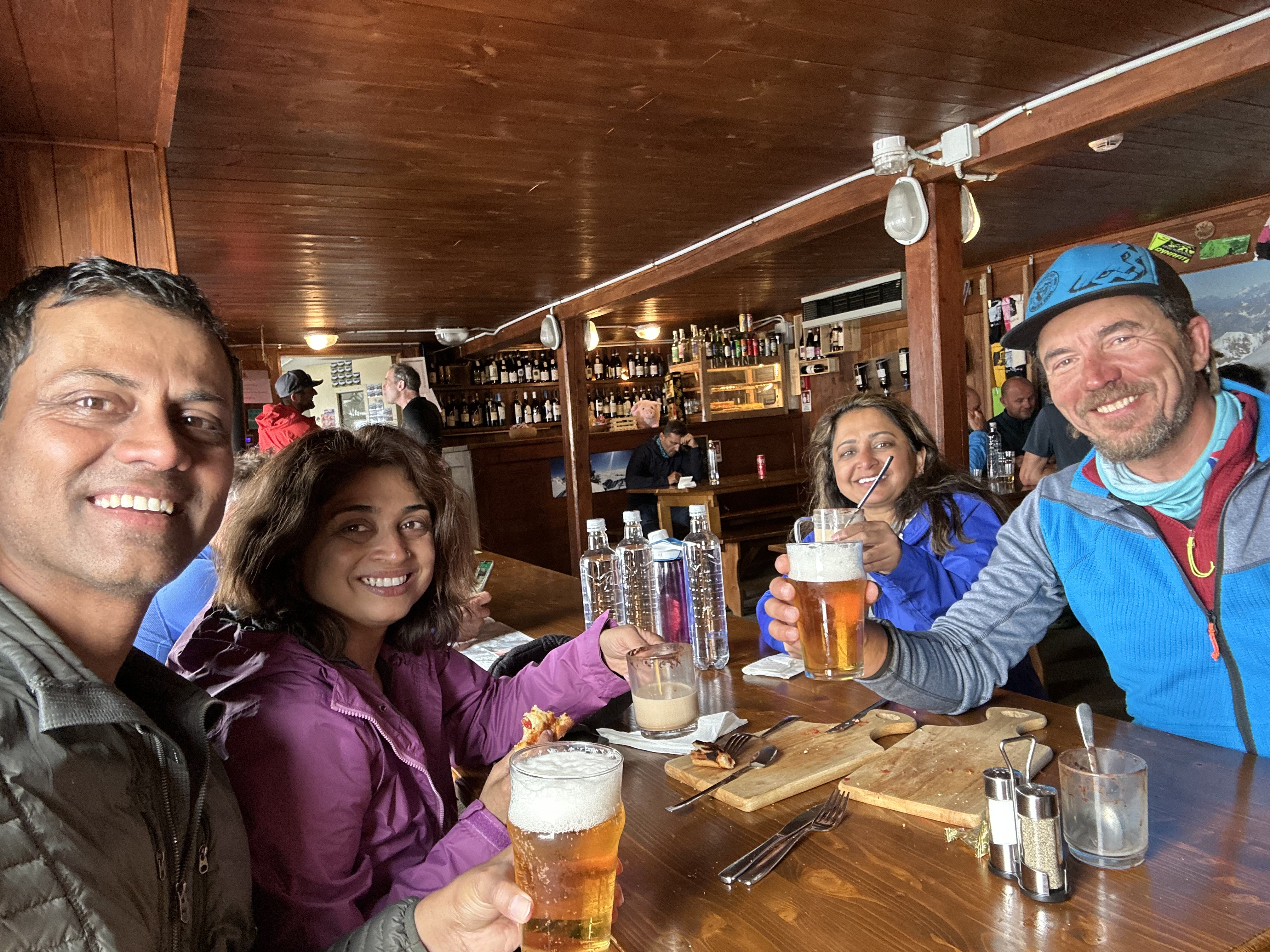 Before leaving Italy, we decided to savor one more delicious meal of pizza and beer for lunch, an homage to the delightful flavors we had enjoyed during our Italian escapade. Pavlos safely drove us back to Chamonix, where we reunited with the rest of our crew. The evening marked a memorable celebration as we gathered at Rocky Pop for an amazing dinner, raising our glasses to the successful adventures, newfound friendships, and unforgettable memories that had enriched our journey.