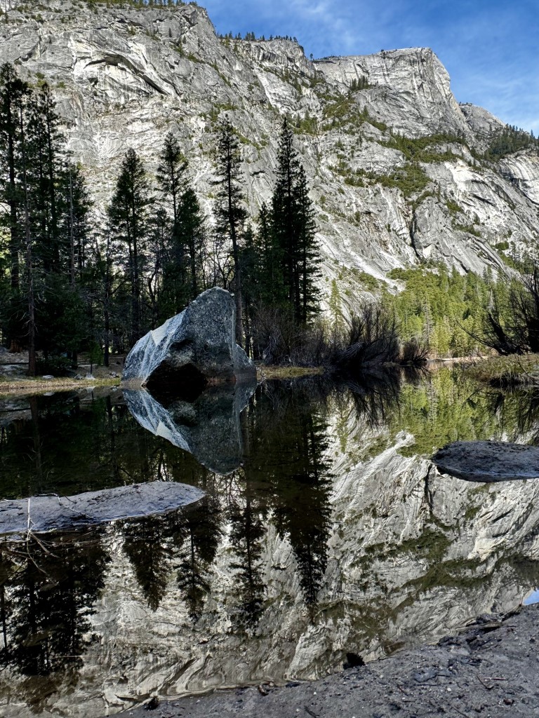 We spent rest of the day exploring beautiful valley witnessing powerful Yosemite Falls, its reflection from the swinging bridge and took a hike to the Mirror Lake.