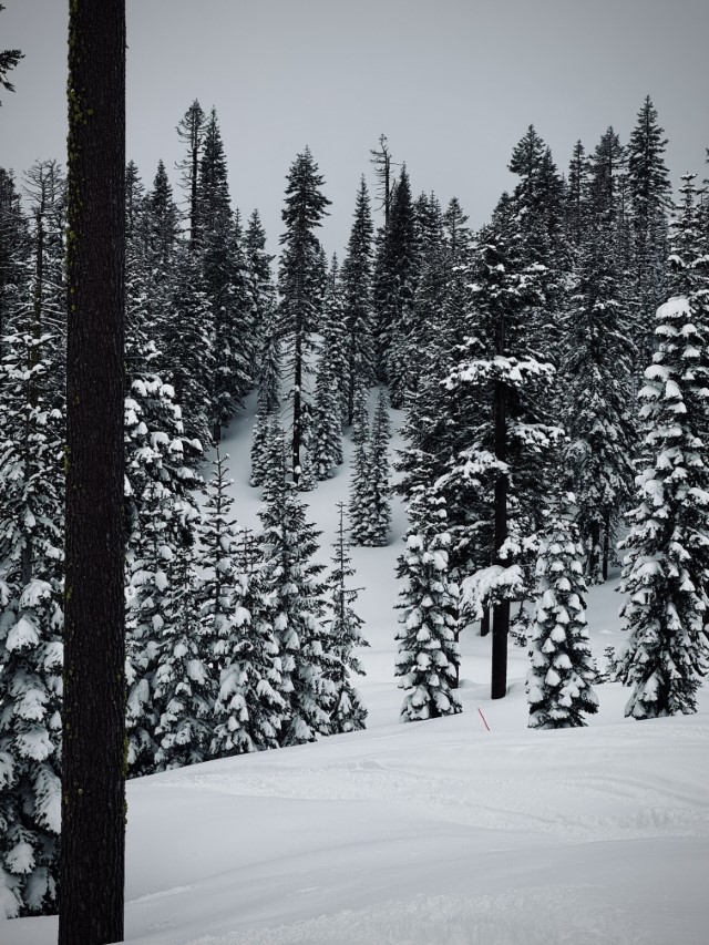 Emerging from the subterranean world of Pluto’s Cave, we set our sights on Gray Butte trail, eager to explore the higher peaks of Mount Shasta’s natural wonders. As we drove closer to the area, our plans changed as the trail was closed near Bunny Flat. We got out of our car where the landscape had been transformed into a pristine winter wonderland. We decided to embark on a snowy snowshoeing adventure.
