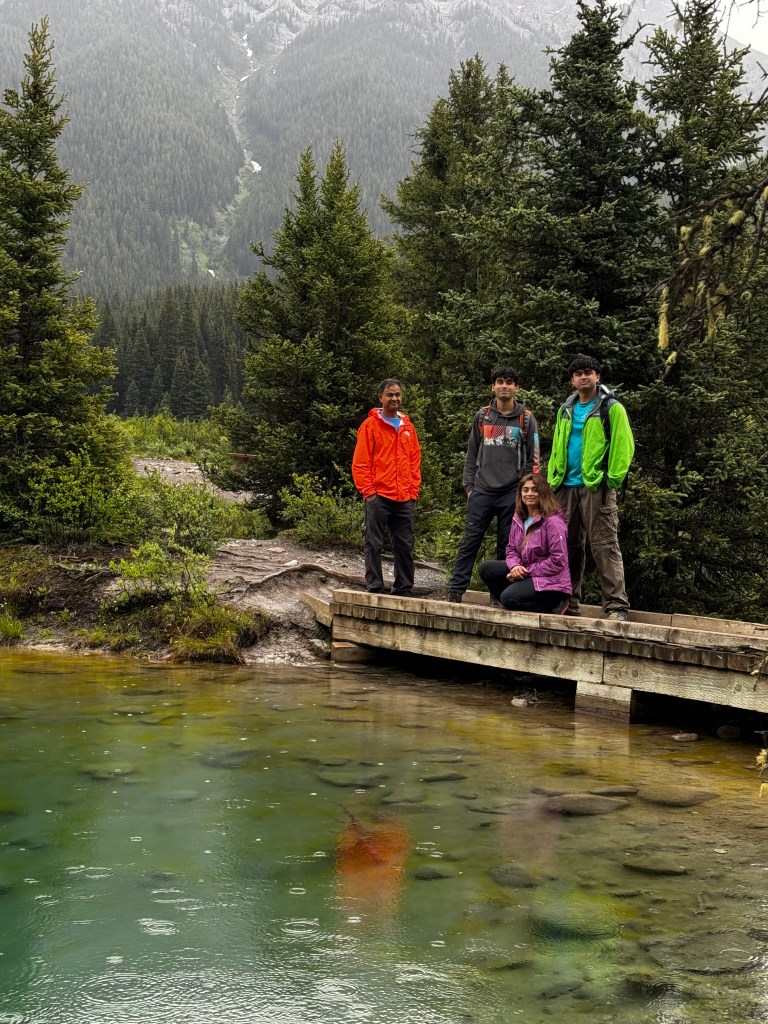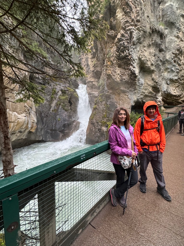 Our adventure in the Canadian Rockies kicked off with a beautiful hike on day two: Johnston Canyon. We hit the trail early at 6 a.m. to dodge the crowds that flock to this popular spot. It’s a relatively easy hike in the beginning, with clear, well-maintained pathways and plenty of spots to stop and admire the canyon walls. But while most hikers stop at the Lower or Upper Falls, the best part for us was the extra journey past the falls to the serene Ink Pots.