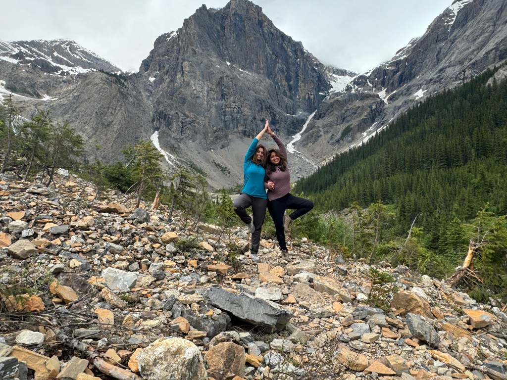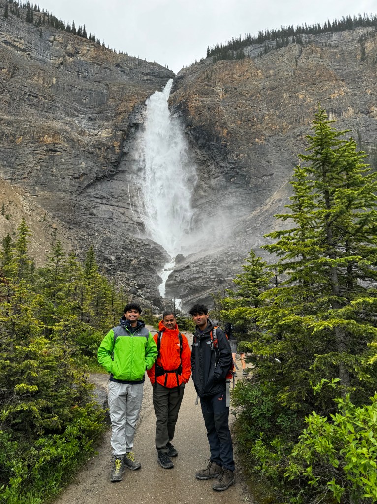 The hike begins near Emerald Lake, leading through forested paths and up gentle switchbacks. As we climbed, we enjoyed views of alpine meadows dotted with wildflowers and sweeping views back over Emerald Lake. The last stretch of the trail takes you up a rocky slope to the base of Emerald Glacier, where we got up close to the ice-blue crevasses and heard the distant rumble of avalanches. Arnav and Anuj opted for this extra stretch while we enjoyed the views looking at the glacier. It was a breathtaking end to the day and a perfect way to experience Yoho’s rugged beauty.