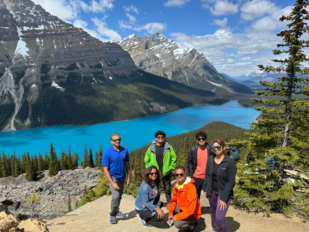 The iconic Peyto Lake was next. Its vibrant blue color and wolf-shaped outline make it one of the most photographed spots on the Parkway—and for good reason! It was crowded, but the view was well worth it.