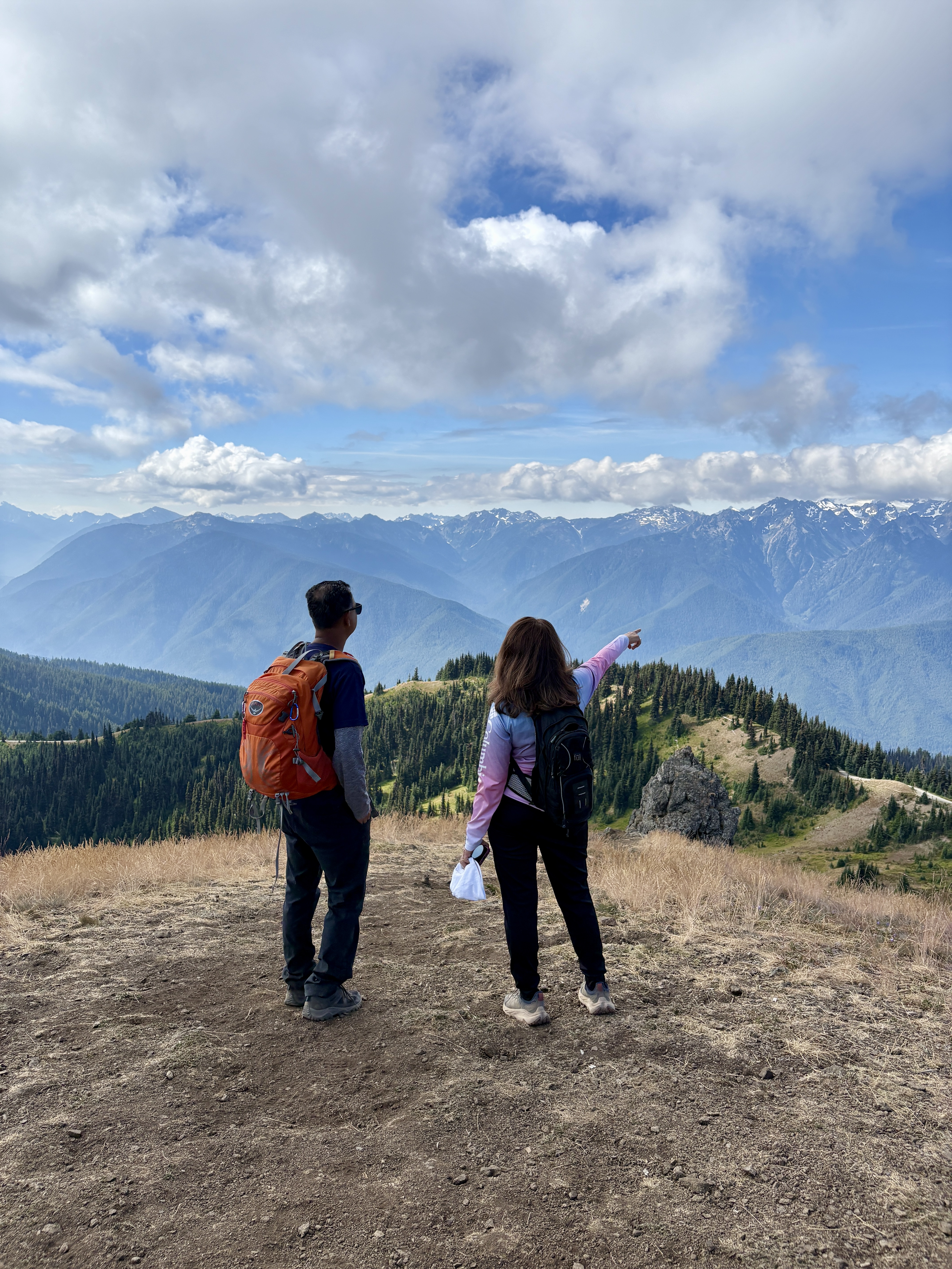 After our caffeine fix, we hit the road and drove up to Hurricane Ridge. The scenery on the way up was breathtaking, and once we arrived, we hopped onto the paved trail known as Hurricane Hill. The alpine views from the hill were nothing short of spectacular. We spent some time soaking it all in, snapping photos and enjoying the serenity of nature.